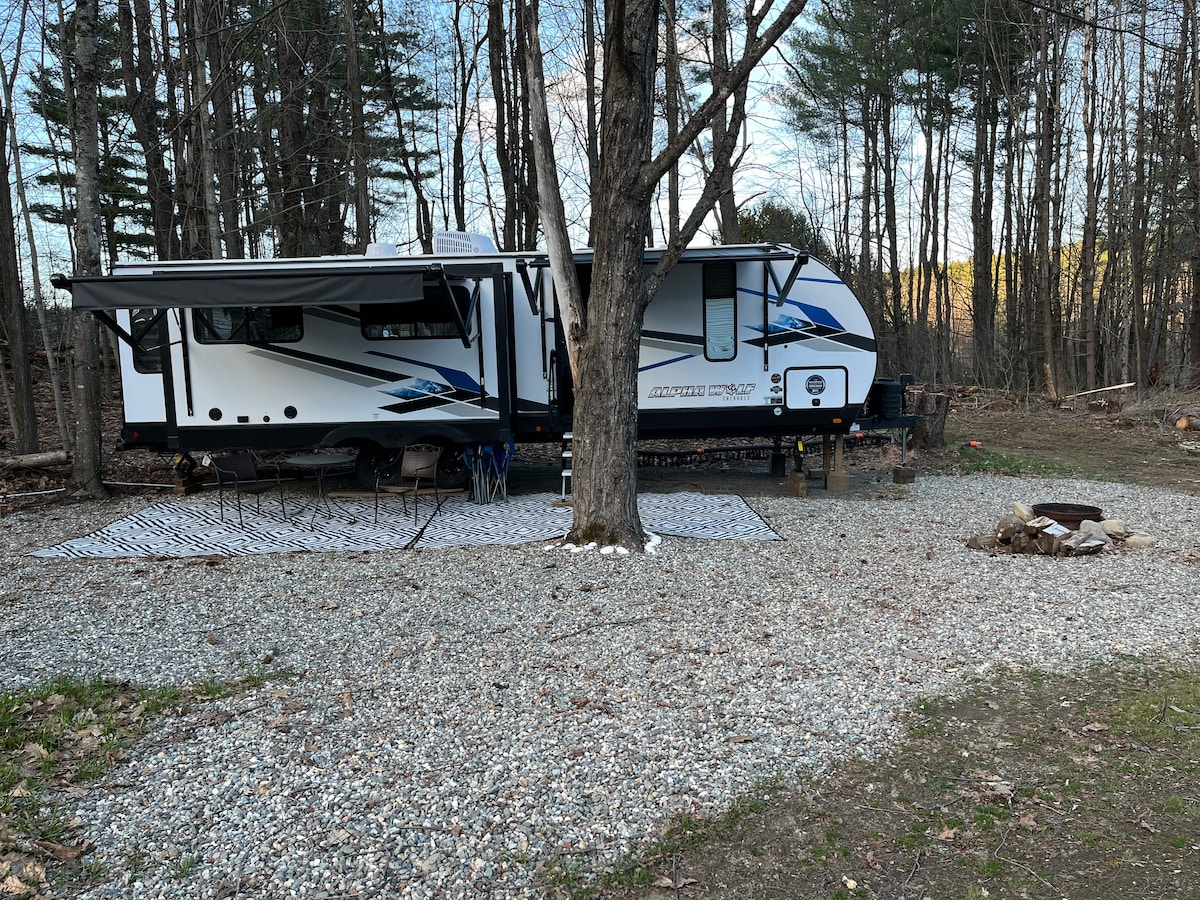 Guests must walk 420ft from the parking spot through the woods to reach the RV. There is a cart / sled for you to use. *In WINTER* 4x4/AWL Drive Required 2W Drive Vehicles Proceed at your own risk Private, year-round, 4 person Hot tub! 420 Friendly! There may be beer in the fridge. Over the years guests have started a "Take a Beer Leave a Beer" tradition. Pets Welcome! CHECK IN 4PM - 8PM Wood for sale on site! $10 Large wood bundles