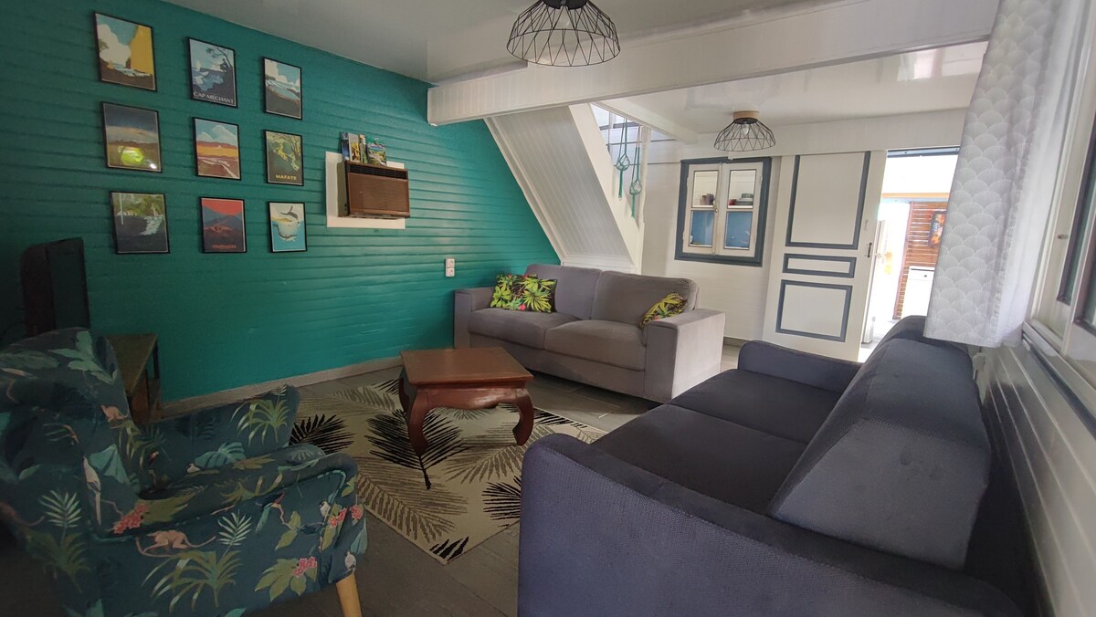 Creole duplex bungalow between sea and mountains