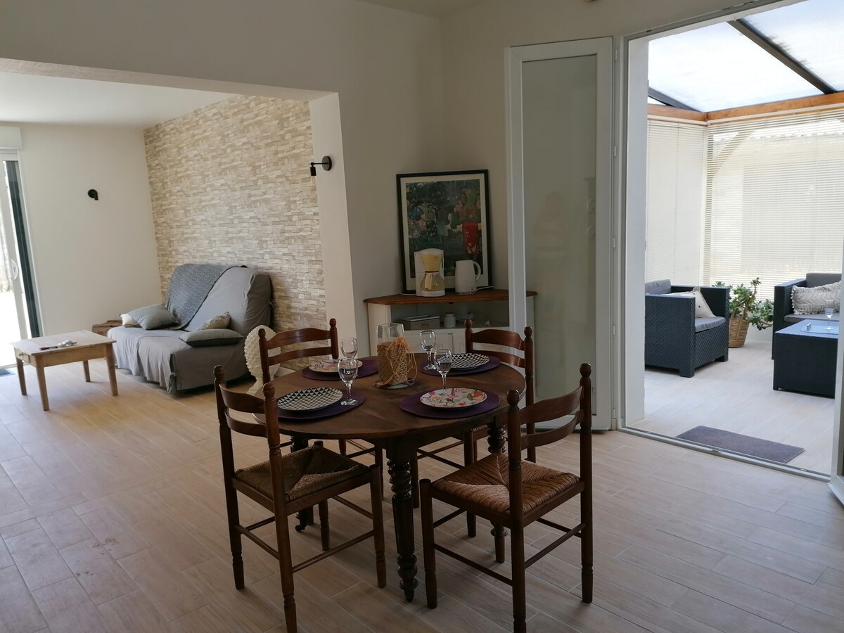 South of Saumur, in the center of Doué-la-Fontaine, famous for its Zoo "le Bioparc". Quartier des Arènes. Attractions within 25 minutes: Center Parc (day pass), castles, vineyards, troglodytes, banks of the Loire Charming House, Veranda, Terrace, Private Parking. Inside, fitted kitchen, living room (sofa bed), bedroom (firm/comfort bedding), dressing room, large shower room, laundry room, veranda. Numerous amenities Secure entry with keypad WIFI Cocooning spirit assured!