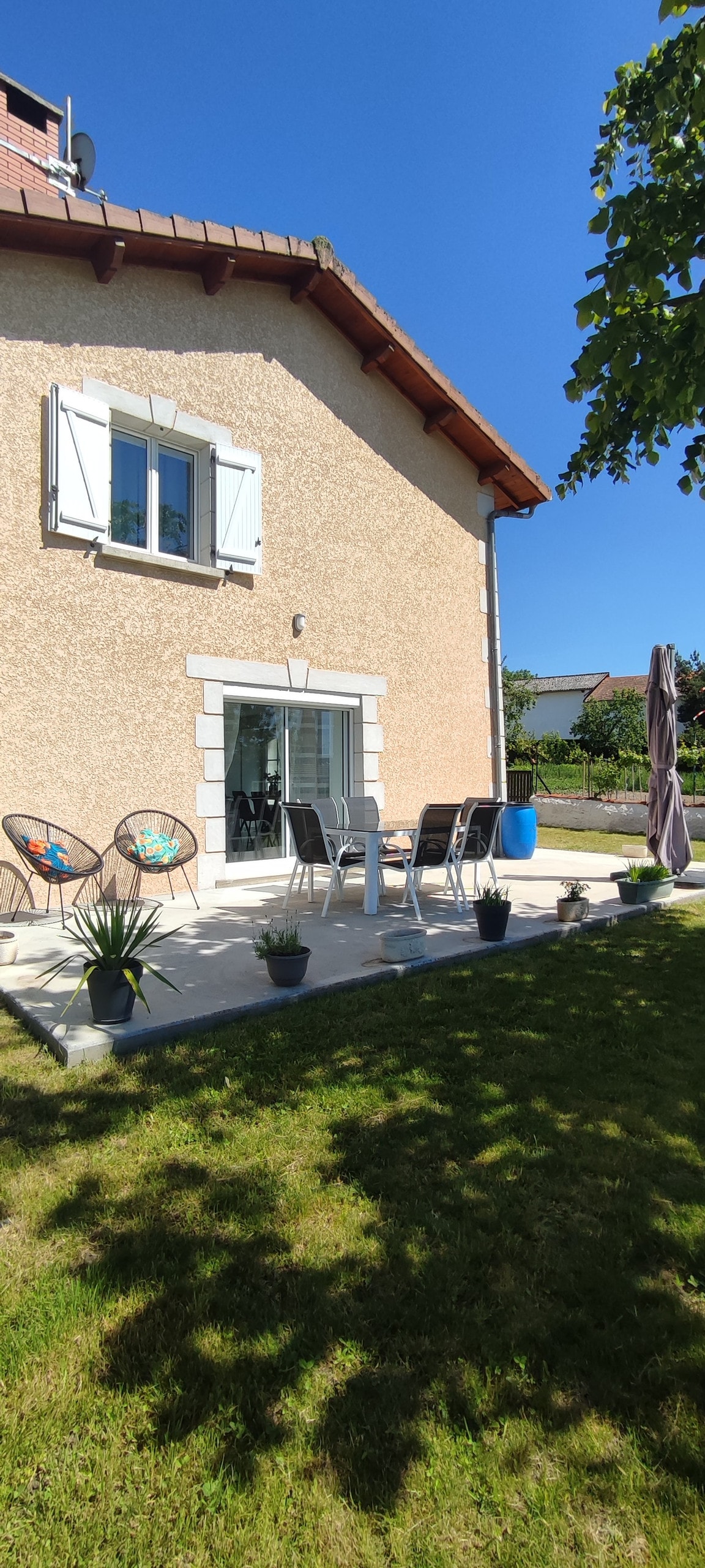 Ideally located 5 minutes' walk from the city center and shops. Quiet neighborhood. It is located on the ground floor of our main house, independent entrance. Bright and pleasant to live in. Small outdoor courtyard with table, chairs and deckchairs. The room is not equipped with shutters but with blackout curtains. Bed made on arrival, towels provided. Shower gel, shampoo, soap. Coffee, herbal teas, chocolate, water bottle available.