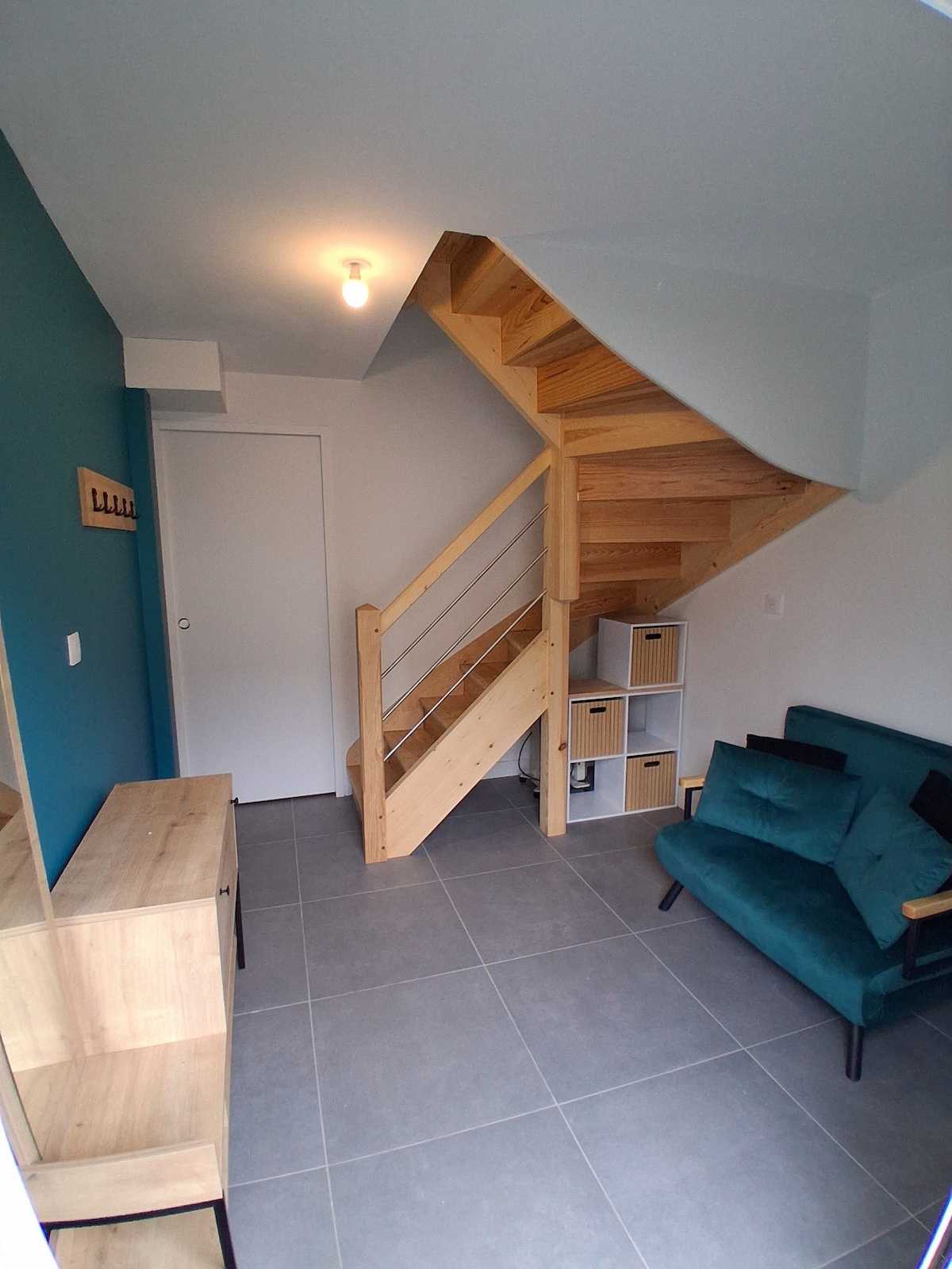 Refurbished space, 35 m2: - large bedroom / living area - separate adjoining equipped kitchen - shower room + toilet Quiet residential house, near the city center, supermarket. Your space is on the ground floor, we live upstairs. The room opens onto a large terrace at your disposal for sunny days. Coffee, tea, and infusions available. Wi-Fi connection NON-SMOKING – please go to the terrace. We will be happy to advise you during your stay!