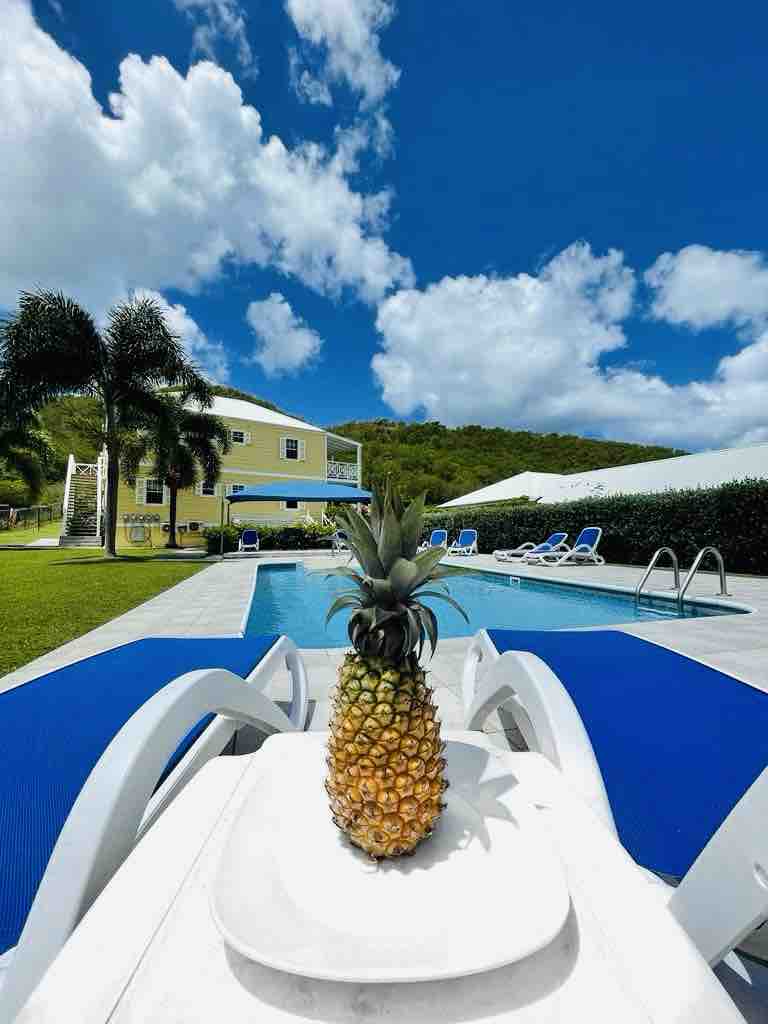 Lovely self contained apartment on the bottom floor of this detached property located in the centre of the island. With easy reach of all amenities including St. John’s, the World Heritage Site of Nelson’s Dockyard and the international airport. Centrally located to enable travel to as many of Antigua's 365 sandy beaches as you can, with local shops, bars/restaurants nearby. Your room has a/c and the pool is just outside your room with chairs and loungers for your relaxation and pleasure.