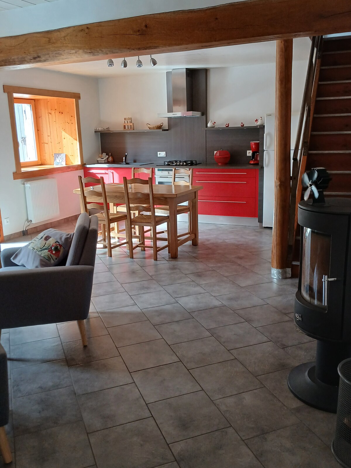 Whether you're looking for family fun, a romantic weekend or just for work, come and relax in our single-storey accommodation attached to our house. You will have a living room-kitchen with sofa bed (sleeps 140), a bedroom with a 160 bed and walk-in shower. Sheets and towels are provided. Available on request: baby bed, bathtub and high chair. Just 1.5 km from the start of the longest Himalayan footbridge in France