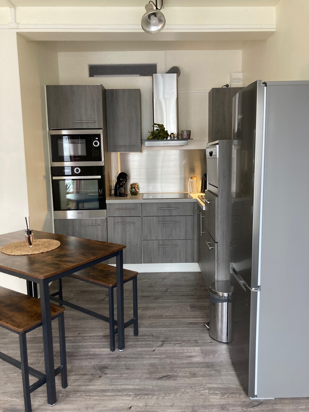 This former workshop, just renovated, has become a lovely little welcoming house. Located close to the village, but in a quiet cul-de-sac, it has magnificent views of the valley. Renovated in industrial style to retain its origin, it offers a fully equipped kitchen, a bathroom with shower, a living room and a cozy bedroom upstairs. A small terrace will allow you to enjoy the view. Free parking in front of the house. A true haven of peace!