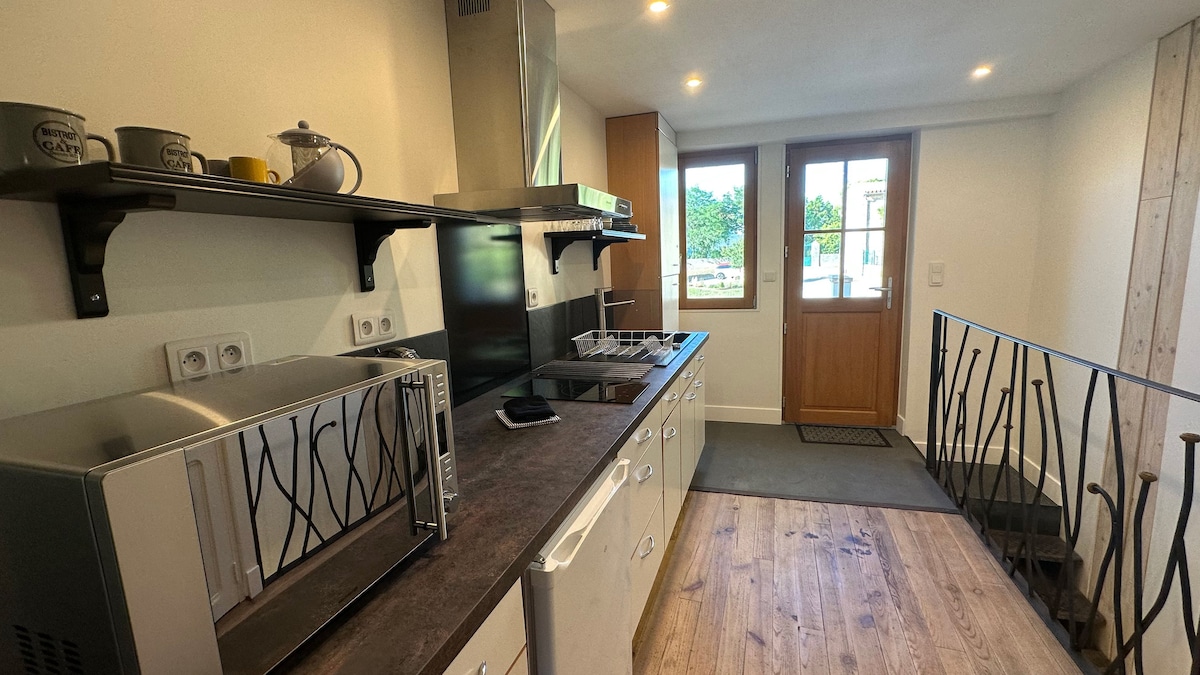 Kick back and relax in this calm, stylish space. . Ground floor apartment, with its independent entrance in a condominium of only 2 apartments. Located in the center of Villefranche-de-Lauragais. . This cozy, elegant apartment, in a Japandi style, will allow you to spend a pleasant evening or weekend. . It consists of an equipped kitchen, dining area, living room with desk and a cozy sleeping area with its bathroom and very large shower.