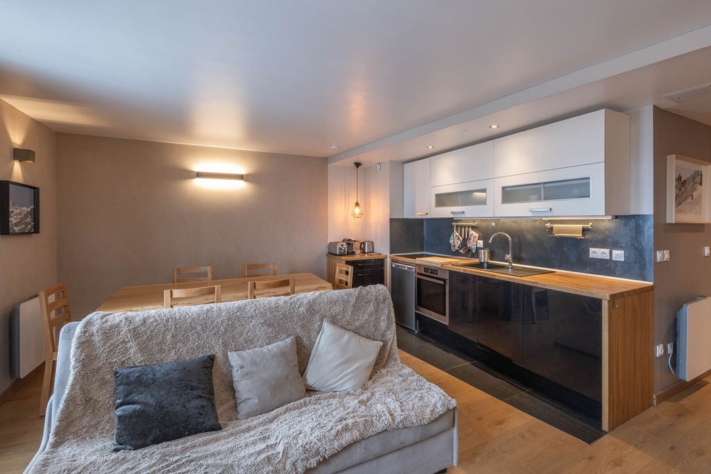 The bright studio is located in a typical and quiet area of the village of Champagny. Shops, bars, restaurants, as well as the departures of the ski lifts for Champagny / La Plagne / Paradiski, 10 min walk, and the possibility of a free shuttle. Swimming pool, relaxation/wellness area, play area 5min walk away. Nordic area and Champagny le Haut toboggan run accessible by free shuttle. Facing south, and southwest, with views of the mountains, you have access to parking.