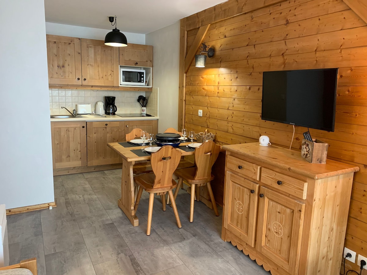 Rental fully refunded in case of COVID cancellation up to 2 days before. Furnished tourism rated three stars with Wi-Fi THD located in a charming quiet area. Return on skis to the residence. Gondola within 100 meters. All activities can be done on foot. The apartment is quickly accessible from the entrance of the building (same level as the entrance hall, balcony side, the apartment is on the second floor). Balcony SOUTH. Free shuttle within 100 m