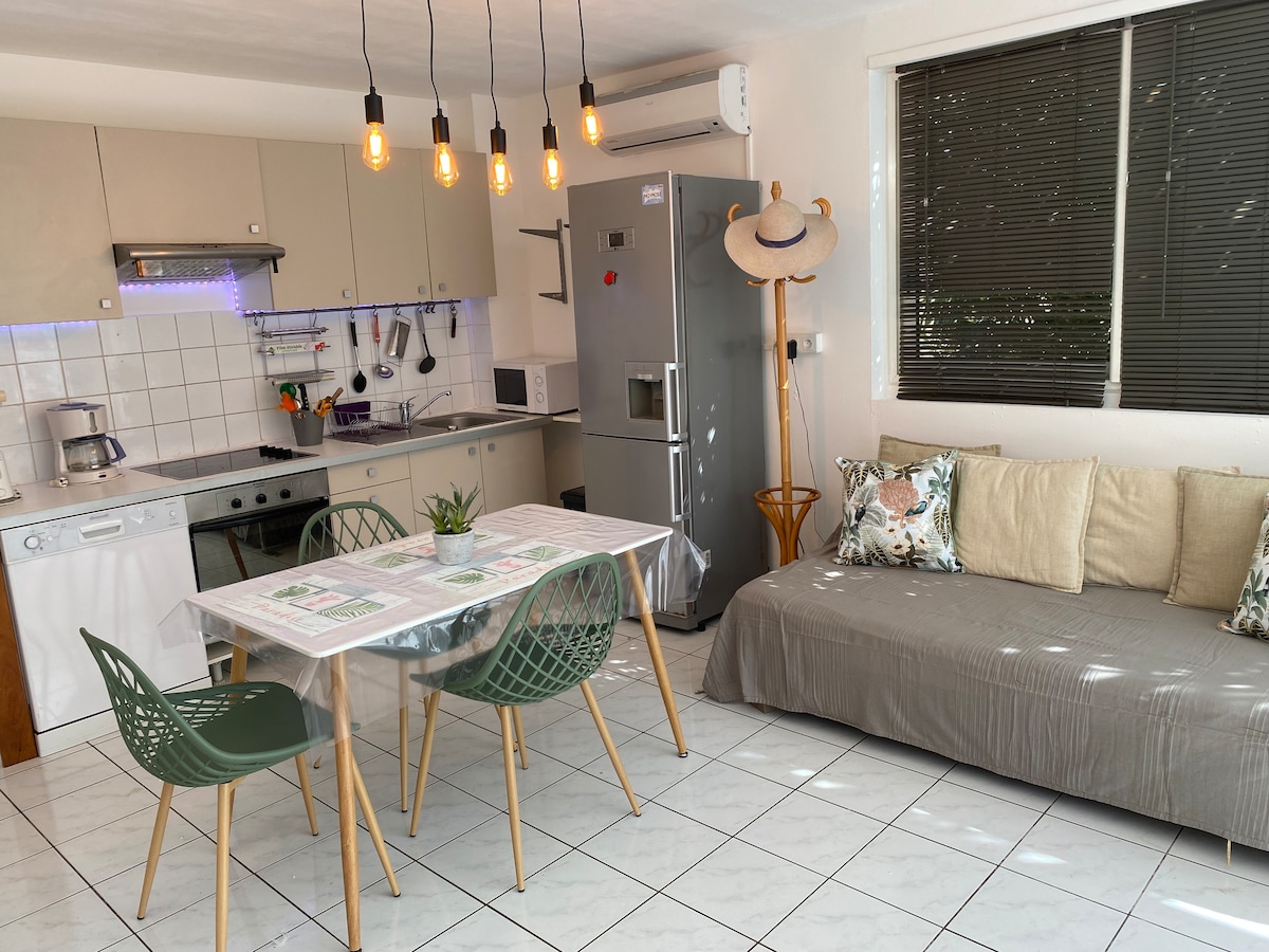 Renovation 2026 - 2-room apartment of 44 m² + terrace, in open space classified 3*** with large kitchen, TV lounge, Italian shower. Le Letchi in Boucan Canot welcomes you for short or long quiet stay, view of the tropical vegetation, 500 m from one of the most beautiful beaches on the island, ideal for 4 adults or couples with 1 or 2 children. Secure parking. Supervised and secured beach and large natural seawater pool. Privileged location for visiting the island. Cot: please ask