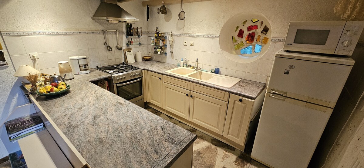 A pretty medieval house, centrally located in one of the top 100 prettiest villages in France, with local amenities & great restaurants just a 1 minute walk! Lovely soft furnishings, heating and a cosy log burner make this an ideal 'home from home' for winter and spring breaks too. Work remotely with the wifi (fibre is here) if you need, and cherish many beautiful walks nearby. Enjoy morning coffee in the sunlit lounge, listen to the heart beat of the village awakening, Simply breathe deeply!
