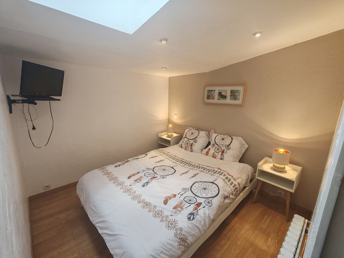 Hello Raymonde, it's an air-conditioned studio with a private patio Treat yourself to a charming break in the countryside, just 20 minutes from La Rochelle! Cozy studio of 25 m2 independent of the main house • Vegetated patio and intimate atmosphere • Equipped kitchen • Bathroom, linen provided • Reversible air conditioning, TV, Wi-Fi • Free street parking The bed will be made for your arrival Small welcome tray with tea and coffee Cleaning done by us, please wash the dishes