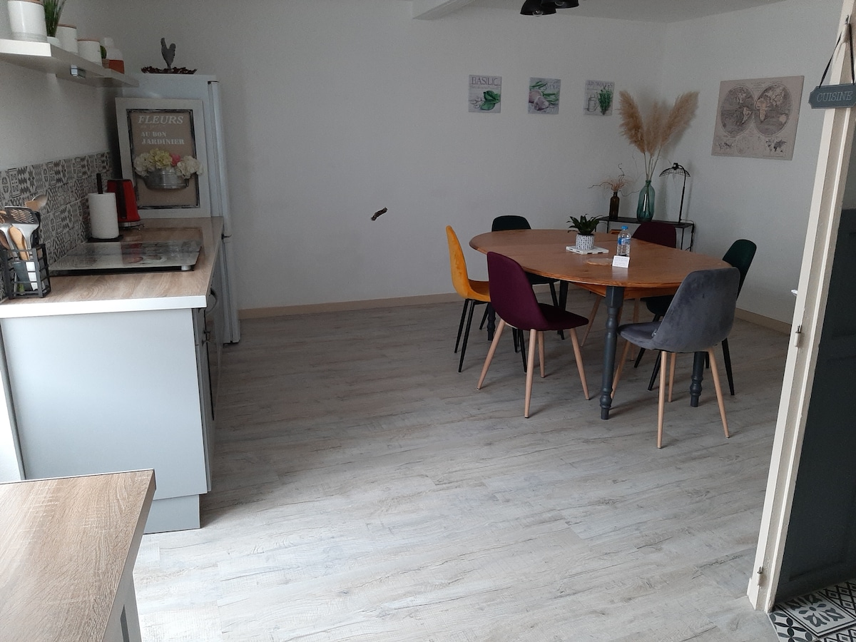 Peaceful townhouse ideal for 90 m2, a spacious 26 m2 fully equipped kitchen, toilet and living room on the 1st floor. 2 beautiful 17 m2 bedrooms with new ceiling fans, toilet and bathroom on the 2nd floor. On the ground floor a garage, a laundry area and courtyard with garden furniture + 4 bicycles available. House located 5 min walk from the Abbey of Saint Savin (UNESCO Heritage), 35 min from Futuroscope, 25 min from CNPE Civaux, 15 min from Chauvigny, walking circuits, shops, restaurants.