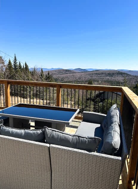 The rifugio is the perfect place to take refuge. A peaceful oasis surrounded by nature and mountains as far as the eye can see. The Rifugio offers you the freedom to make an authentic connection with nature and enjoy quality time alone or with others. As soon as you walk through the door, you are greeted in a warm and comfortable atmosphere. Large windows offer magnificent views of the surrounding mountains and in the distance we can see the tip of Lac Mégantic.