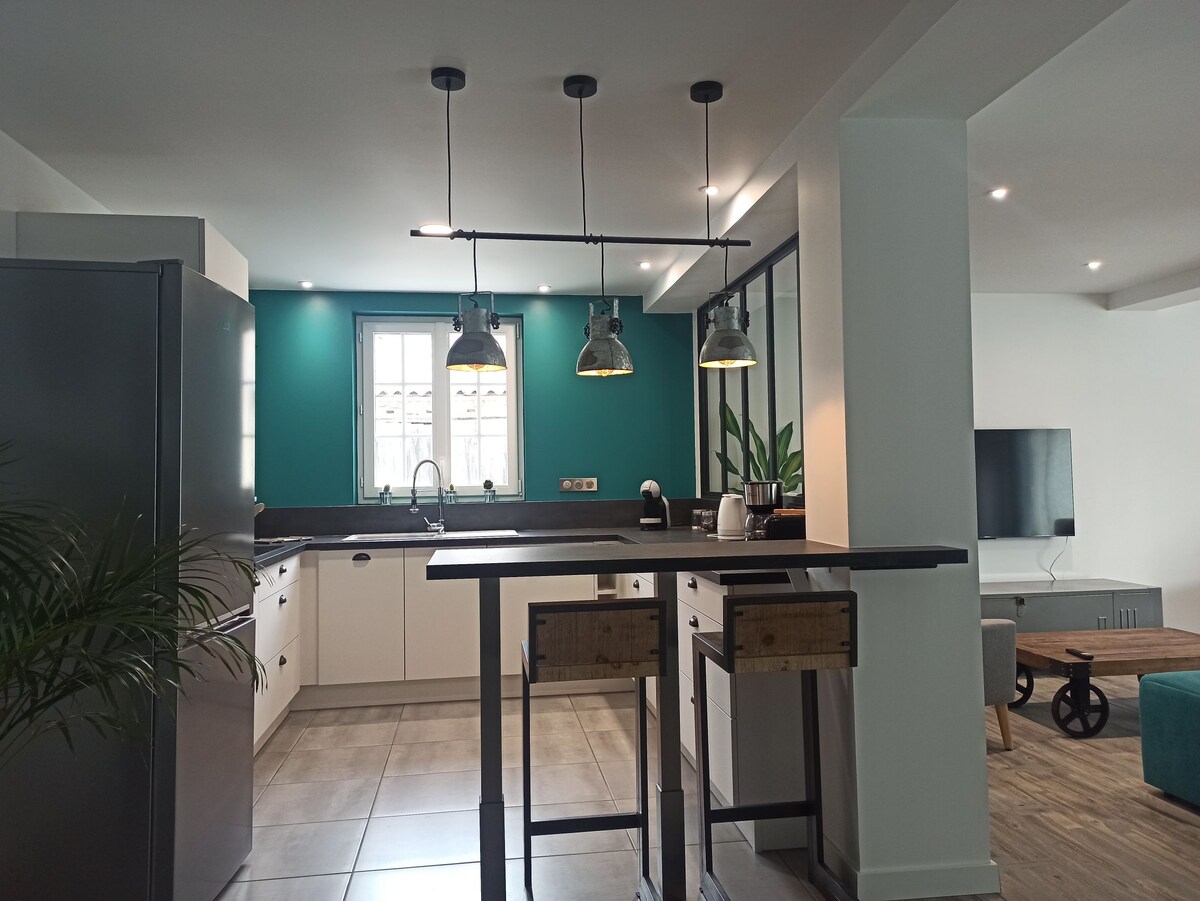 Welcome to this spacious and serene accommodation, composed on the ground floor of a large living room with fully equipped kitchen, Dolce Gusto coffee machine, a laundry room with washing machine, and a toilet. Upstairs 3 bedrooms each with TV and shower room, 2 toilets including 1 in the master suite. Outdoor dining area with garden furniture, a plancha, an umbrella, shelter for a car. Linens are fully provided.