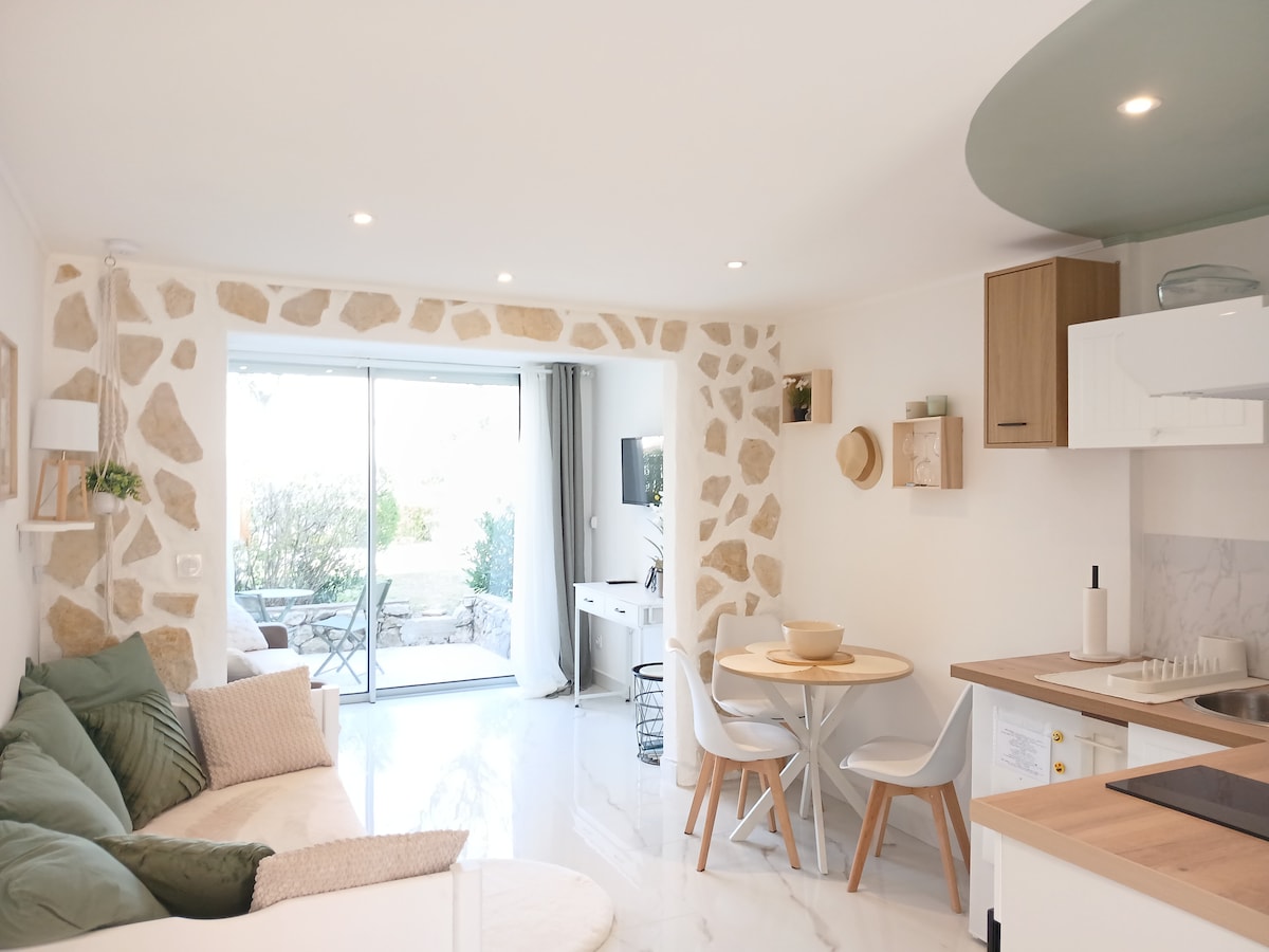 Petit STUDIO très bien équipée avec entrée et parking privé dans une grande Propriété avec piscine et jacuzzi chauffés du 10 avril au 30 octobre . La piscine extérieur et jacuzzi ainsi que le jardin sont partagés mais assez grand pour profiter chacun son espace de tranquillité . Je vis dans la bastide principale . Un Havre de Paix entouré d oliviers centenaires . A 35 minutes de l aéroport de Nice et divers villages provençaux et 14km de Cannes . Tele grand écran /abonnement Netflix