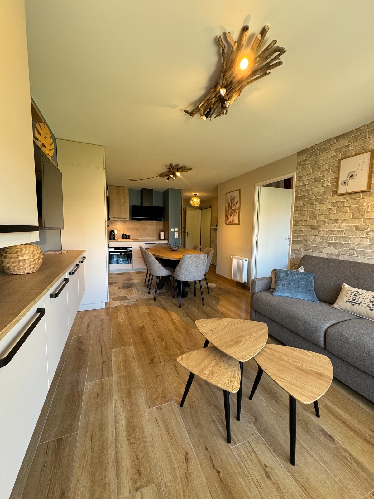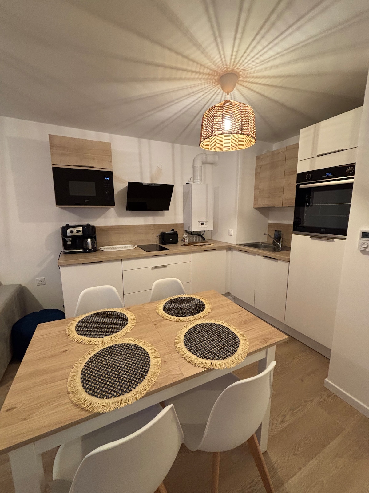 You will be welcomed in a beautiful, bright and new 50 m² apartment (delivery February 2025) for 4 people (a couple with 2 children for example) in a quiet and secure residence. Ideally located, 50 m from the beach and 500 m from the city center with its amenities. It is located on the 2nd floor accessible by elevator. Tastefully decorated and well-equipped, everything is designed for a pleasant stay in peace and with family.