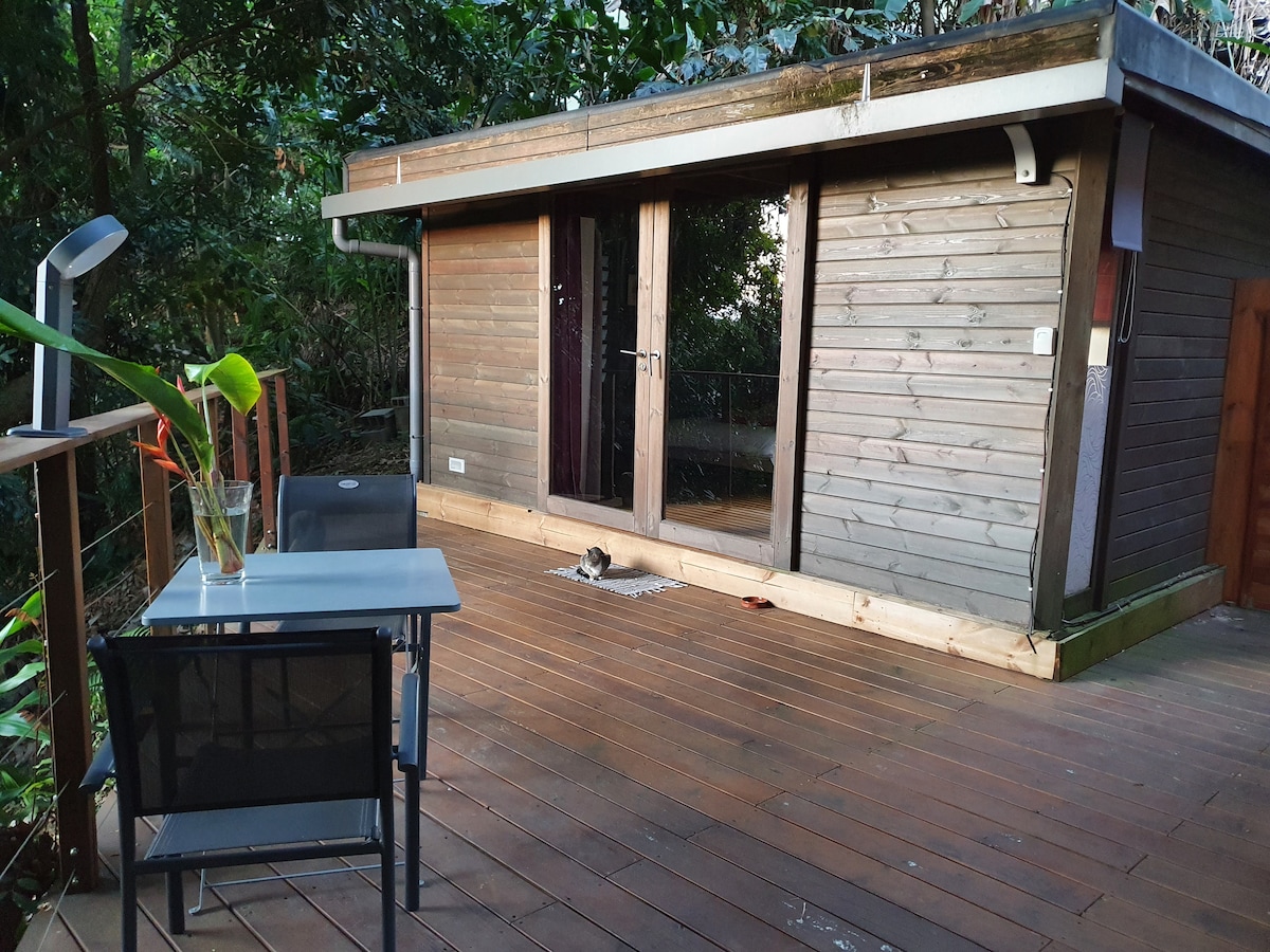 Pause quiétude entourée d’arbres fruitiers, de fleurs tropicales, en pleine nature. Impasse à flanc de ravine. Calme absolu. Chant des oiseaux. Bungalow chaleureux, terrasse extérieure à l'ombre des arbres. Nombreux commerces à proximité - centre commercial - cinéma multiplexe - restaurants - Aéroport à 10mn. Marchés locaux typiques les mercredis, samedis et dimanches (Chaudron et Sainte-Marie). Nombreuses randonnées et balades à proximité (bassins et cascades).