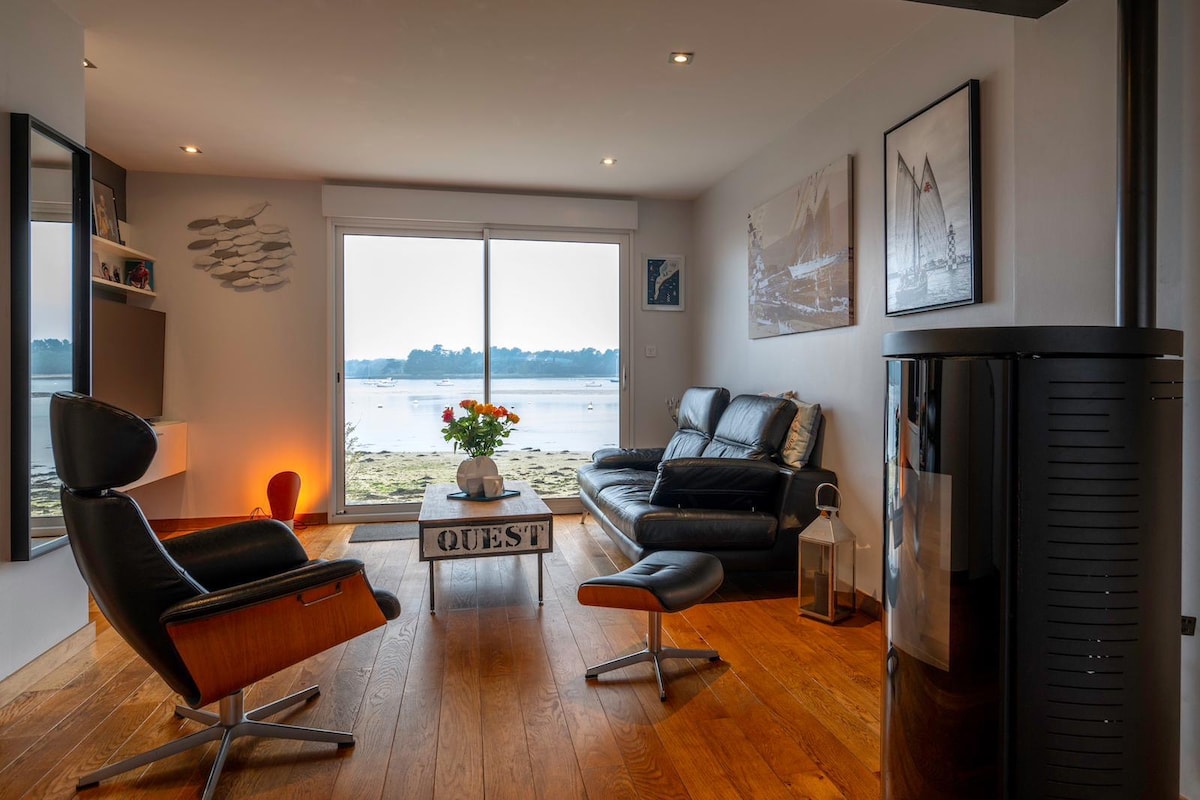 We offer you a 40 m2 apartment that we wanted to be welcoming and warm, with every comfort, by the sea. We hope that like us, you will enjoy the meals facing the estuary of the Pont l'Abbé River and the legendary sunsets. You can also enjoy the cale with its terraces and restaurants. For shellfish lovers, shore fishing is possible and an oyster farmer is nearby. Small market every Monday in season.