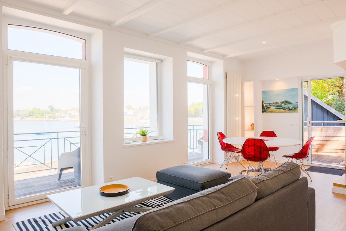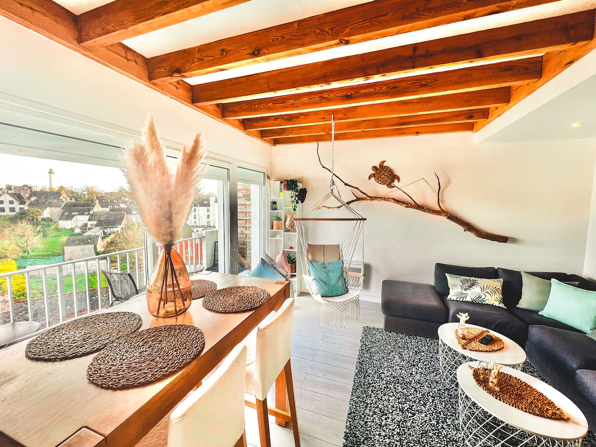 Unusual triplex nestled between sky, sea and harbor café in the middle of the pretty 5-star seaside resort of Bénodet in Finistère-Sud. Everything is within walking distance: the port, the beach, the cliff, restaurants, thalassotherapy, the casino, artisanal ice cream, etc. within a radius of 300 m. Ideal triplex for 1 or 2 couples for a city getaway by the sea. Great starting point to explore the South Finistère between Concarneau and the Pointe de La Torche.