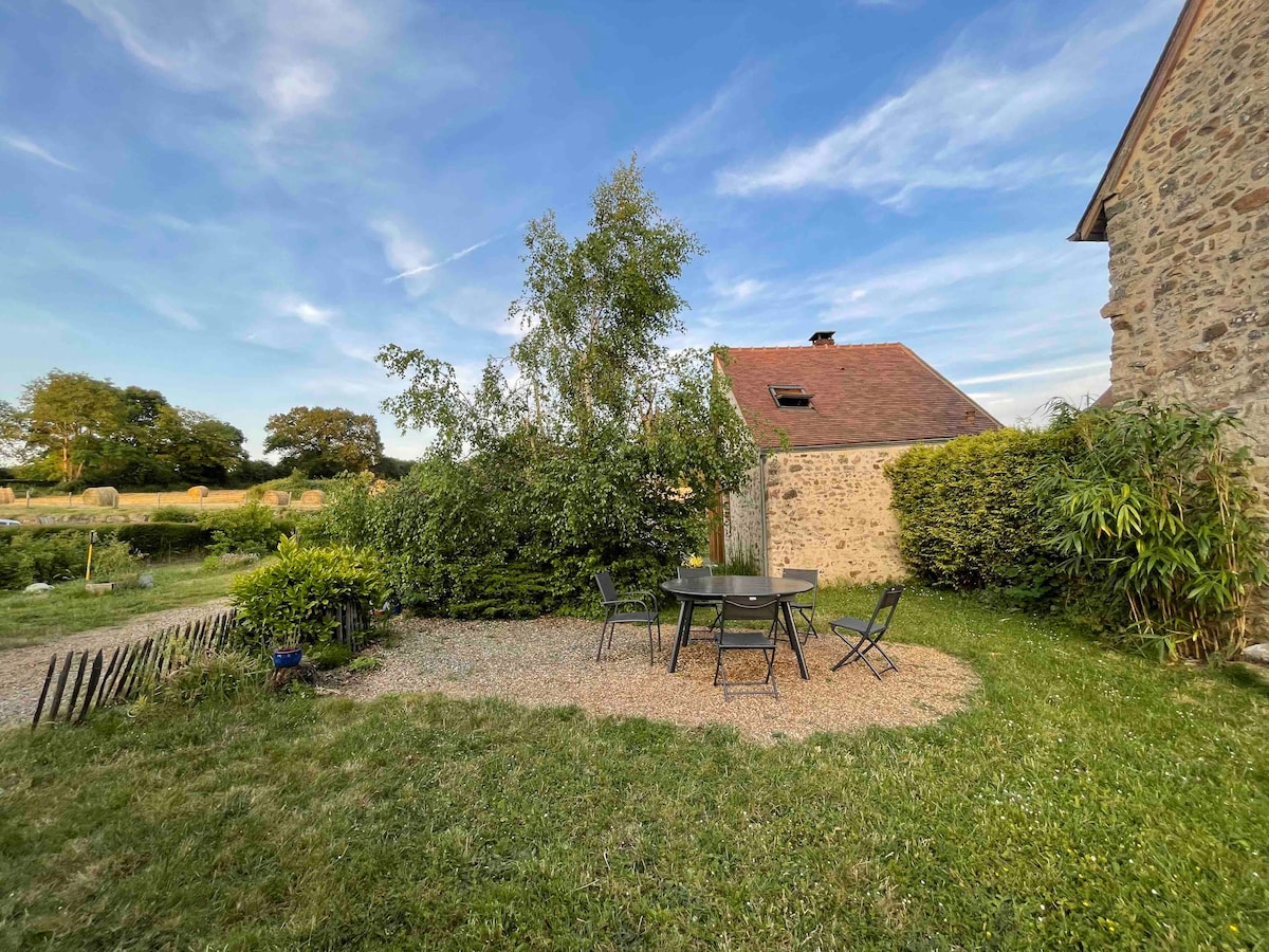 Halfway between Mont St Michel and the Loire Valley castles! On a hiking trail, you will be comfortably housed in the quiet of the countryside and in complete independence. You will have at your disposal a nice living room with 1 sofa and 1 table, 2 bedrooms as well as a bathroom. You will have a private terrace facing the pastures. Alone, as a couple, with your children or a couple of friends, we will be happy to welcome you and offer you a breakfast with our homemade products.