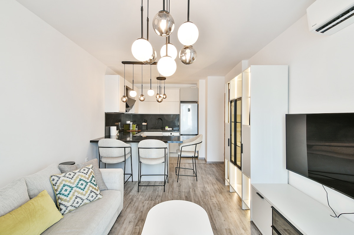 Sea Sunrise & Modern Luxury – Your Coastal Escape Immerse yourself in a modern seaside oasis where every day begins with a sunrise over the sea and ends with the calming sound of the waves. Located steps from Kabakum Beach, this apartment blends the coziness of a homey atmosphere, elegant design, and stunning sea views to create the perfect getaway. - 300m to Kabakum Beach, 680 m to Resort Sunny day - 26 min to Varna International Airport