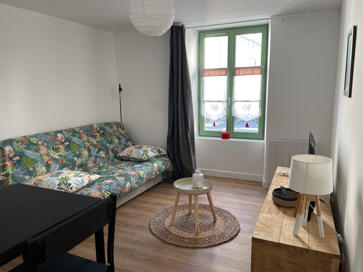 Small 24 m² apartment on the ground floor of a small building renovated in 2024/2025. The kitchen is fully equipped and very functional if you want to cook. The sofa bed is new and very comfortable (I tested it :)) Very central, you will be a 5-minute walk from the market, the abbey and the ENSOA. Close to all shops, you can do anything on foot. Only 1.1 km from the SNCF train station, it will take you about 15 minutes to get there.