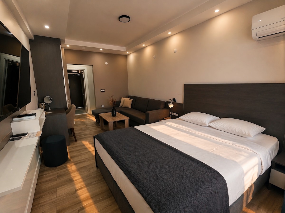 Şehrin kalabalığından uzaklaşmak ama aynı zamanda her şeye yakın olmak isteyenler için tasarladığımız bu modern dairede, sadelik ve konfor ön planda. Minimalist bir anlayışla dekore edilen odamız, ferah atmosferi ve özenle seçilmiş detaylarıyla size evinizdeki sıcaklığı sunuyor.