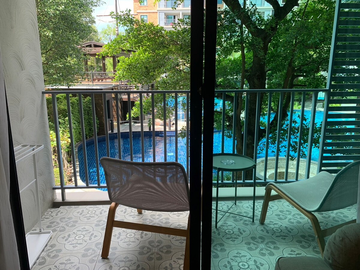 Escape to this stylish 39 m² ground-floor 1BR with private entrance and direct pool access. Relax on your shaded patio just steps from the water or unwind in the bright, modern interior with a king-size bed, smart TV, and fully equipped kitchen. Enjoy a spacious bathroom with walk-in shower, fast Wi-Fi, and air-conditioning. Perfect for couples or remote workers seeking comfort, privacy, and convenience in a peaceful, resort-style setting near Naiyang beach.
