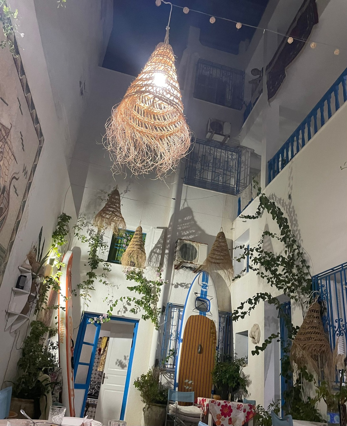 Modernized arabesque house located in the heart of the old city of mahdia and beside the sea. You can do different activities nearby ( diving, coffee shops, bars, restaurants, shopping ,windsurfing , sea walk.....) A perfect stay is guaranteed
