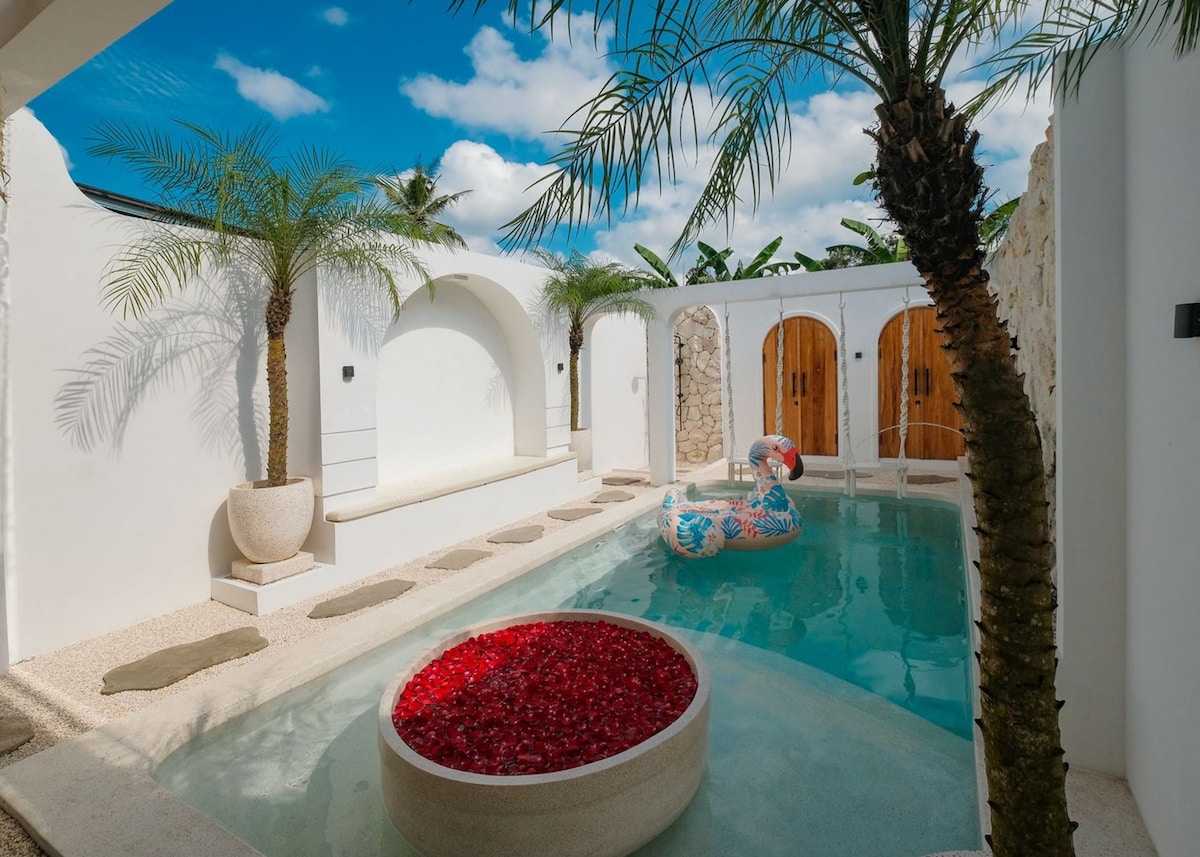 Villa estetik dengan kolam renang pribadi dan bathub. Unit Kamboja memiliki 1 Kamar tidur & kamar mandi dalam yang dilengkapi water heater, memiliki dapur lengkap dengan peralatan masak dan peralatan makan. Villa berkapasitas 2-3 dewasa.