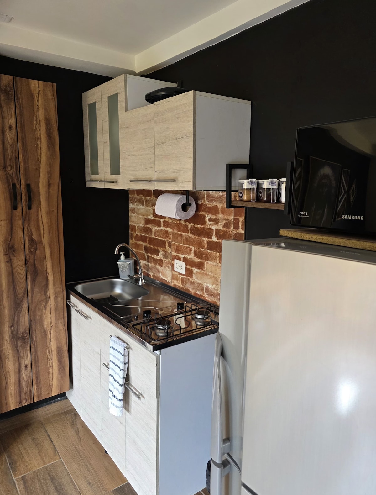 20 meters from the park, apartment with a single space equipped for 2 to 5 people Check-in 3 pm - Check-out 12 noon Self-Check-in with Smart Lock •2 Double beds •Living room with sofa bed. •1 full bathroom with hot water •Hairdryer. • Smart TV with cable and Netflix account. • Fan •Closet •Dining room • Equipped kitchen. • A coffee maker. •Coffee, water, and peanuts. * BREAKFAST NOT INCLUDED * WE DO NOT HAVE PARKING