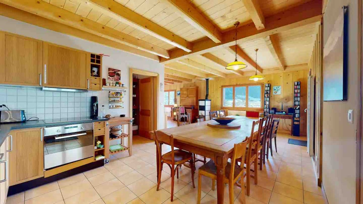 Beautiful apartment in a log cabin close to the most beautiful tourist spots in La Gruyère. Close to public transport, you will also find a parking space. Fully equipped apartment, located in a quiet residential area, overlooking the Alps. Ready to visit the Moléson, the Gruyère Castle? So don't hesitate and book it!