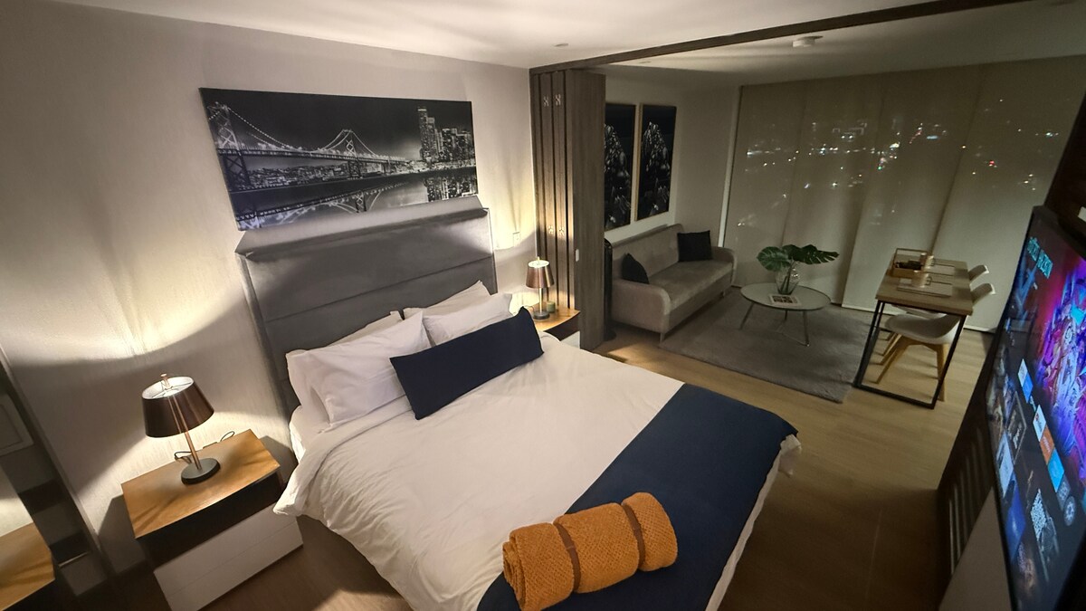 Enjoy a stylish experience in this new and comfortable studio apartment, with a bright room, modern bathroom, equipped kitchen, sofa bed and desk. Located in a central and quiet area of Bogotá, close to the entire event area of the city, Simón Bolívar Park, Movistar Arena, Campin, Vive Claro, Salitre Mágico and more. Minutes from shopping malls, restaurants, bars and 20 minutes from the airport and downtown. Ideal for walking and enjoying green and recreational areas.