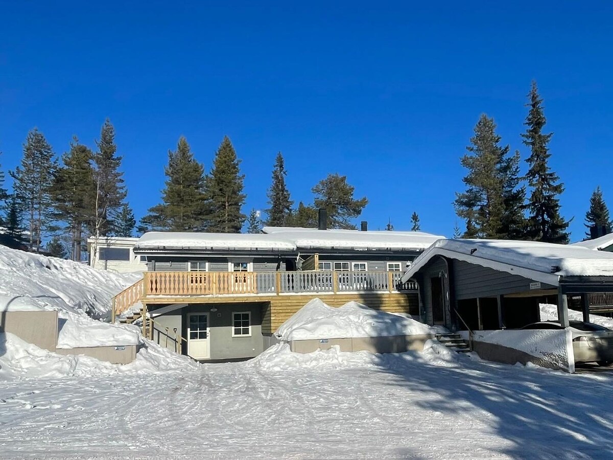 Welcome to our charming cabin with a cozy sauna and grill room in the backyard. The cabin is divided into two separate parts rented out separately. There's a free ski bus nearby and access to beautiful cross-country and snow scooter tracks just by the house. The slopes, supermarkets etc. are just a 5-minute drive. Local restaurants within a 15-minute walk. Please note that cleaning is only included during Christmas, New Year, W6,W7,W8, W9. Cleaning and bed linnen can be requested anytime.