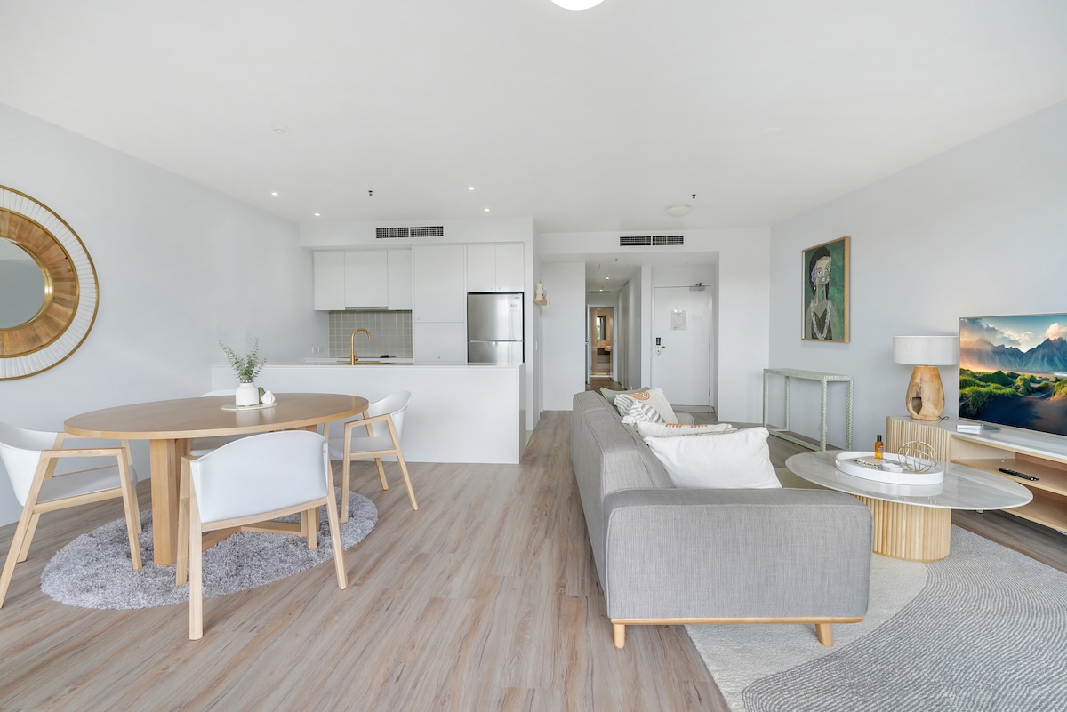Esplanade Views. Self Check In. This 10th floor 1 bedroom apartment features include queen bed, double sofa bed (recommended for child/teenager), fully equipped kitchen, balcony, communal gym, pool, and BBQ area. Please advise prior to check in if sofa bed will be required (a minimum of 72 hours notice is required).