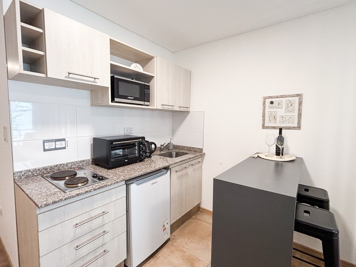Discover our specially designed studio for a comfortable and hassle-free stay. Equipped with a queen-size bed, hot/cold air conditioning, high-speed Wi-Fi, Smart TV and kitchenette with refrigerator and stove, it has full linen and a private bathroom. Ideal for a modern and practical living experience, close to dining areas and with access to a pool, gym, coworking and 24-hour security. Perfect for digital nomads, students, or professionals in transit.