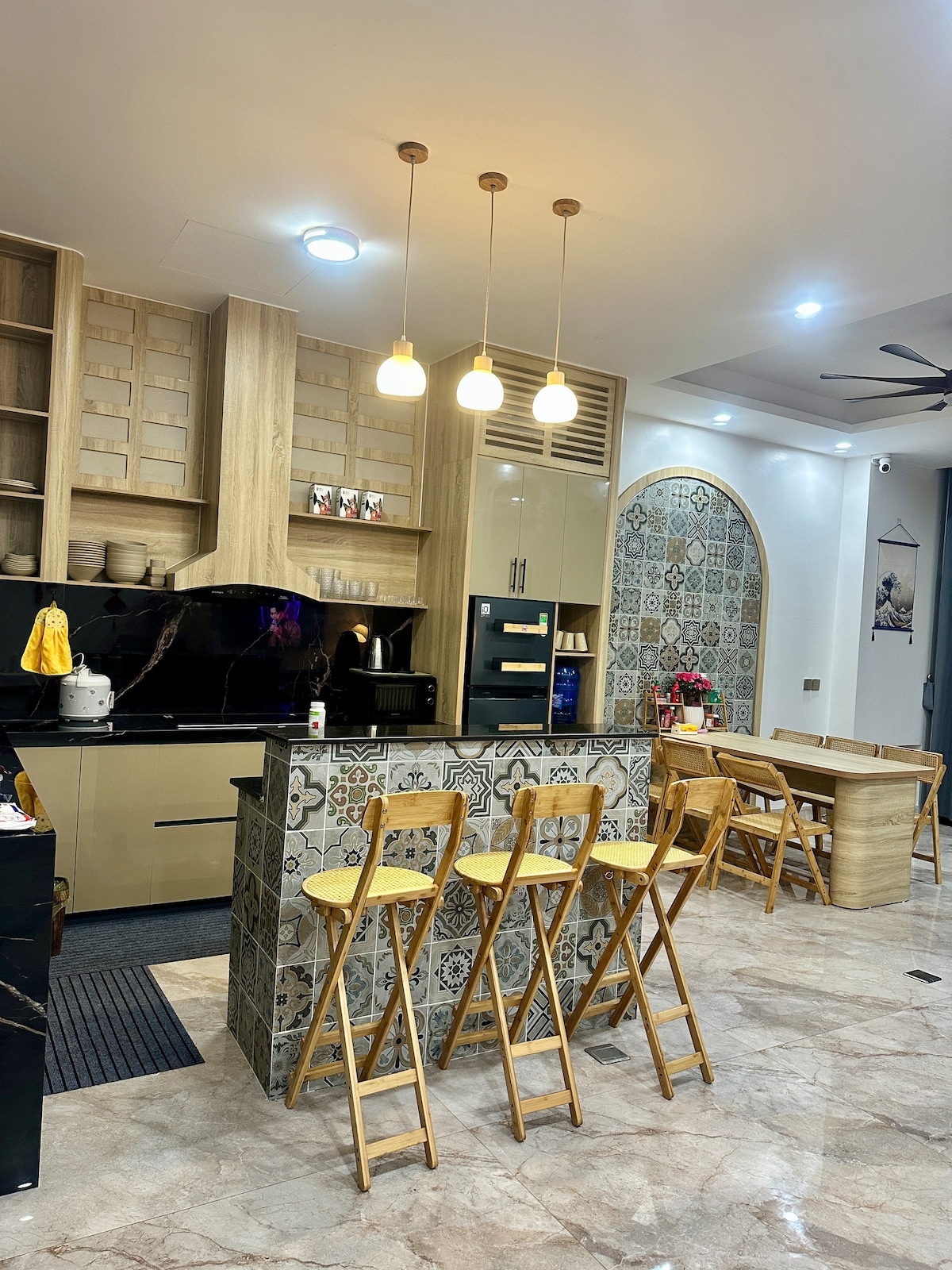 Jades House - Căn biệt thự rộng 252m2 biệt lập, với phong cách Japandi gần biển tọa lạc trong lòng khu đô thị Vlasta Sầm Sơn - Văn Phú Invest. + 6 phòng ngủ với 8 giường + 1 phòng sinh hoạt chung có máy chiếu, có bàn trà (có thể làm phòng ngủ phụ) + 7 nhà vệ sinh đầy đủ tiên nghi + Bể bơi với công nghệ bơm nhiệt Heat pump và công nghệ khử khuẩn và xử lý nước bằng công nghệ điện phân muối. + Phòng bếp có đầy đủ bát đũa, nồi cơm, cốc chén,... + Bếp BBQ, bếp lẩu tại sân vườn + Loa kéo Karaoke