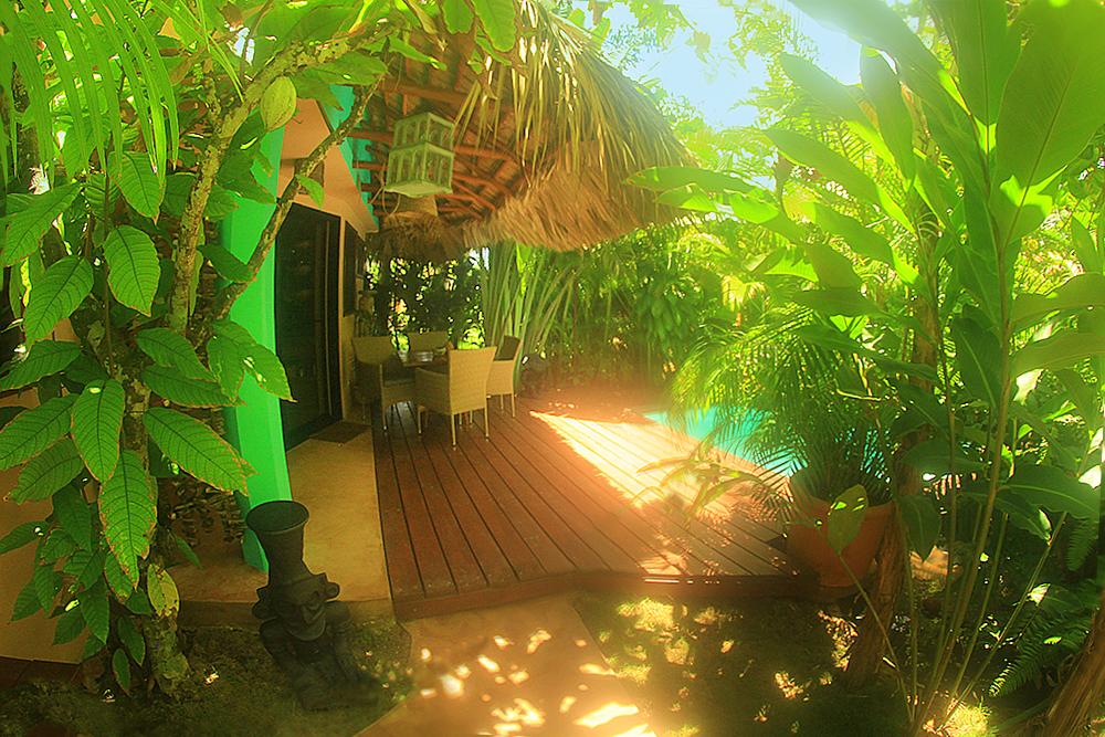 Independent bungalow/apartment full amenities in the Villa Serenidad’s tropical garden with private terrace, fast Starlink Wi-Fi and quiet area 5 min from Punta Popy Beach. • A/C & fan • Equipped kitchen • Private bathroom with hot shower • Private covered terrace with hammock • TV with Netflix included • Shared pool • Free private parking Ideal for couples, solo travelers or digital nomads seeking relax and privacy in nature.