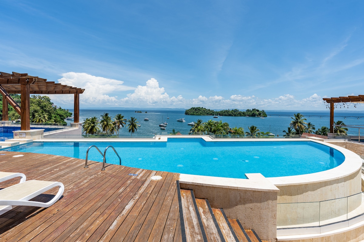 Luxury Modern 4-Bedroom Villa Experience luxury in this stunning seafront villa, nestled in the breathtaking Samana Bay. This private corner property boasts 4 bedrooms, an infinity pool, a jacuzzi, and spectacular panoramic views. Located in the prestigious marina resort and residence of "Puerto Bahia," this villa offers a prime location for an unforgettable stay.