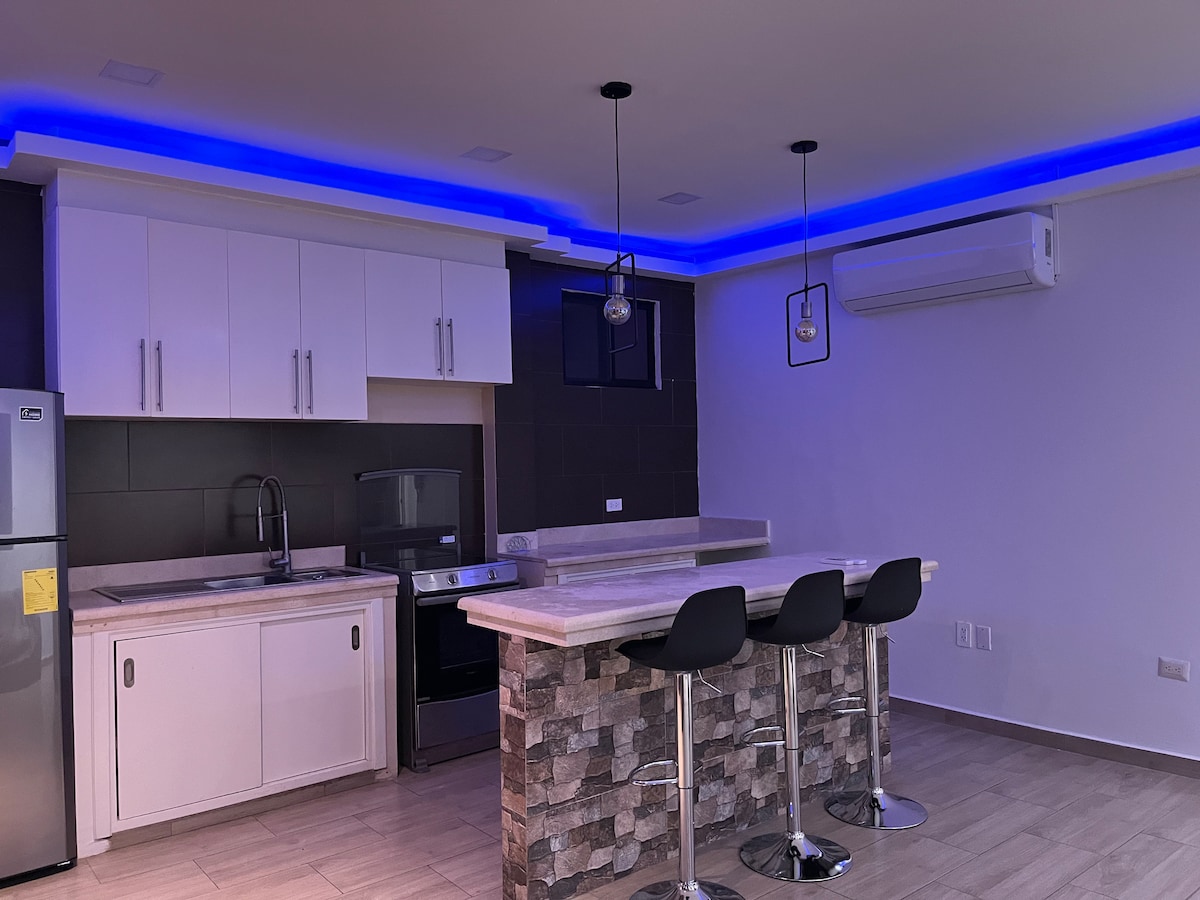 Luxury suite located on the second floor (stairs are climbed). The citadel is private and has a 24/7 guardian. Next to C.C. San Marino. It has a living room, kitchen, bedroom, private bathroom, smart TV with Netflix, Wi-Fi, refrigerator, parking. Access to the development is controlled, and we do our best to expedite the process for our guests; however, it may take a few extra minutes of waiting.