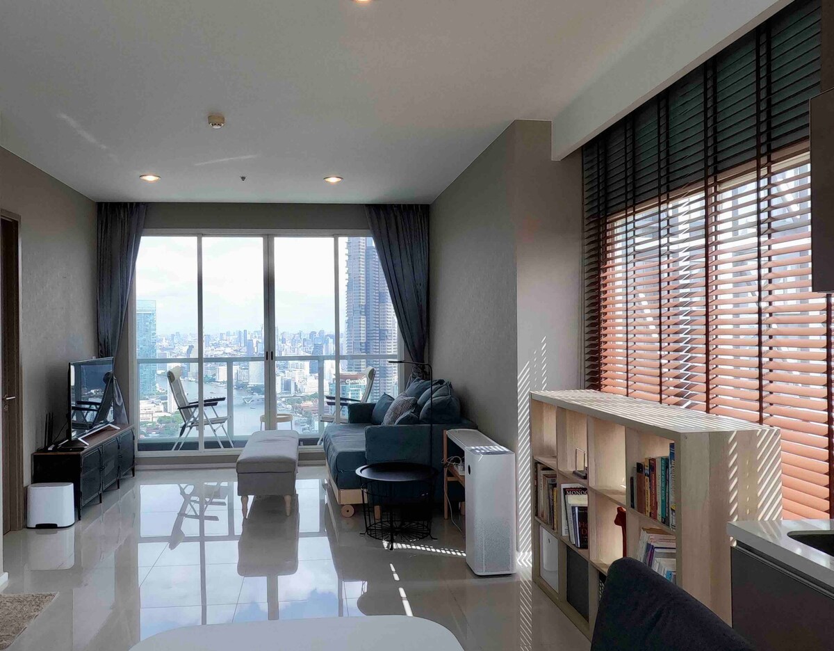 Relax and gaze out at the ever-changing view of the Chao Praya River from the huge windows of both living room and bedroom. Take in a sunset and a stroll to the Asiatique night market just steps away. Situated in one of Bangkok's tallest buildings, this sleek high floor room with picture-window views offers a taste of local city life. Shared top standard amenities include a 360° infinity pool, gym, basketball court, sky lounge and more.
