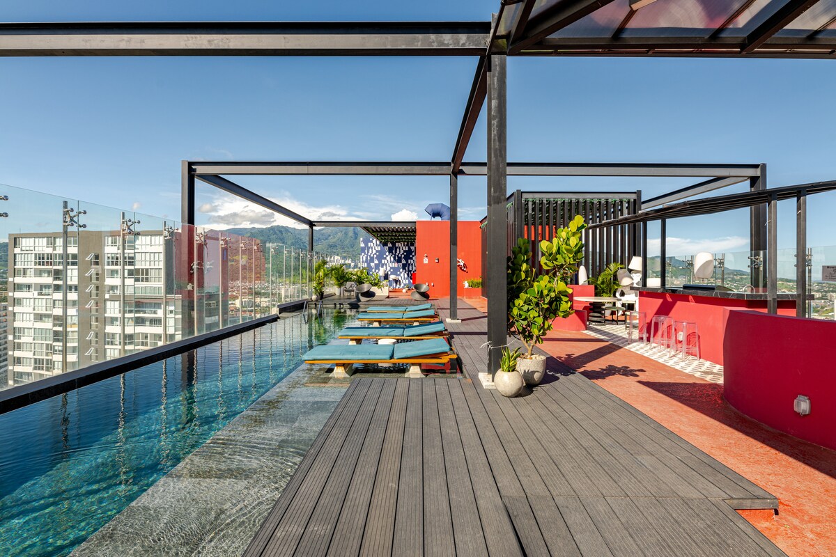 Best location in San Jose! High Speed internet! Free parking, pool and gym! Social areas and co working are available with previous reservation. Close to the National Stadium, Airport, San José downtown, Multiplaza shopping center, restaurants and Escazú. Walking distance from la Sabana park with all the commodities for a long stay: smart TV, comfy bed, AC, balcony, pool, gym, coworking, meeting room, Sky deck, BBQ area, cleaning station, full kitchen, and much more!