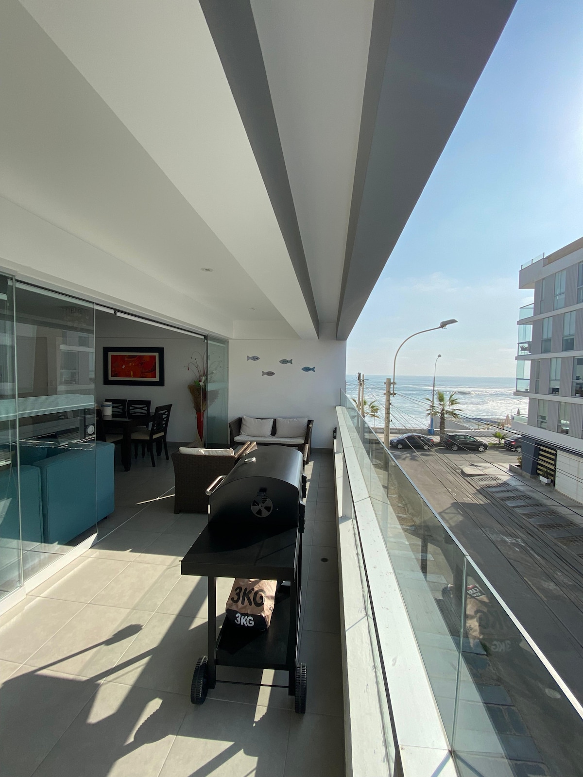 If you want to spend a few quiet days with the sound of the sea crashing on the rocks and breathing fresh air, this will be your favorite place. Relax with your whole family while enjoying the tranquility of San Bartolo. This nice apartment is located in the heart of Malecón Sur (so you can enjoy pleasant walks). It has 2 bedrooms (both with their own bathroom), a living room, an internal patio, a kitchen, a barbecue grill, and a large terrace with ocean views.
