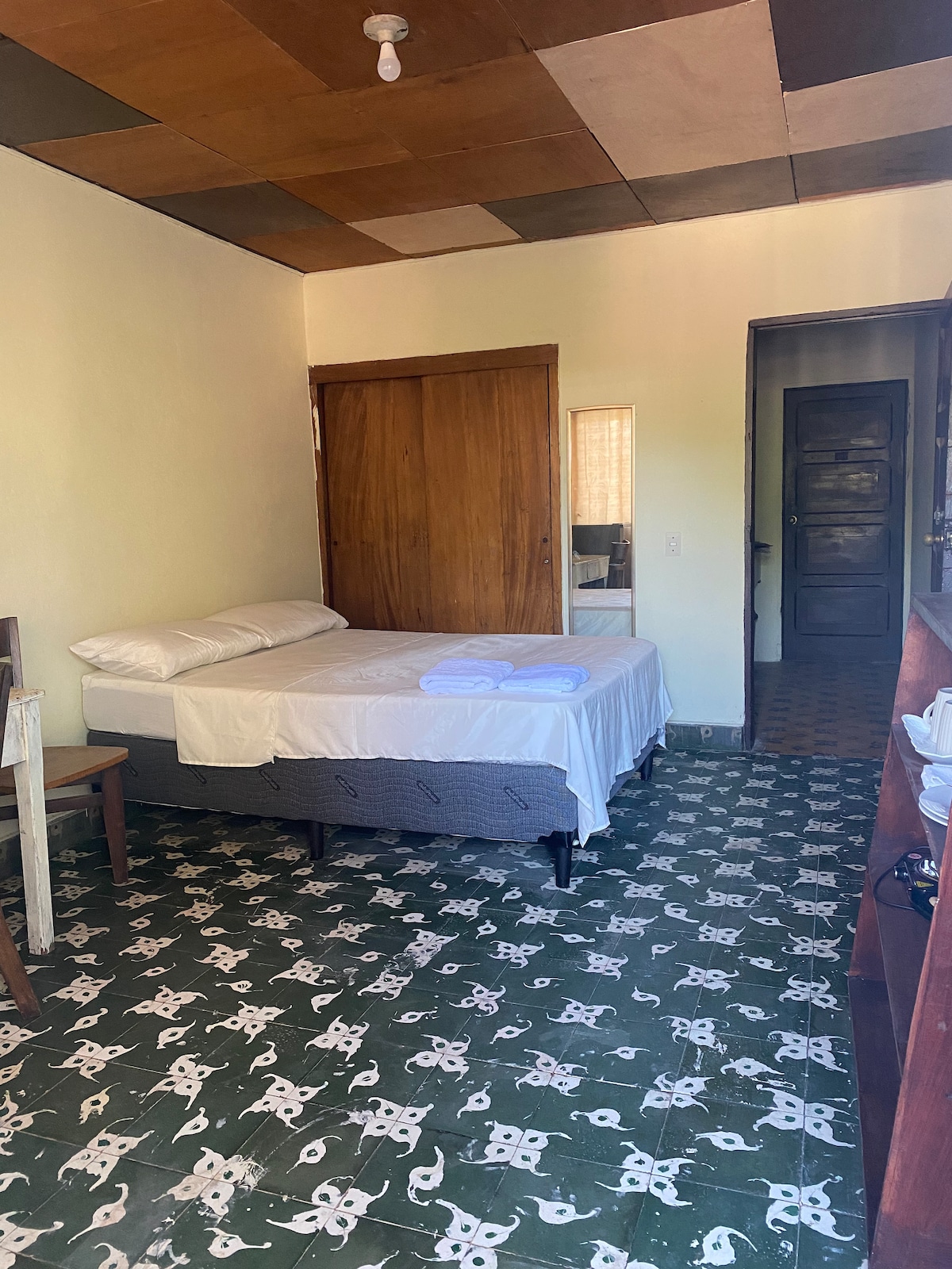 House in the heart of San José Guayabal, a quiet and safe town in the Cuscatlán department, within the Suchitoto area and just one hour from San Salvador. Perfect for those seeking relaxation and privacy. Steps from the central park, it offers a private pool, terrace with rocking chairs, and two hammocks. Includes high-speed internet, living room, dining area, and equipped kitchen. Two bedrooms with A/C and two bathrooms (up to 4 guests).