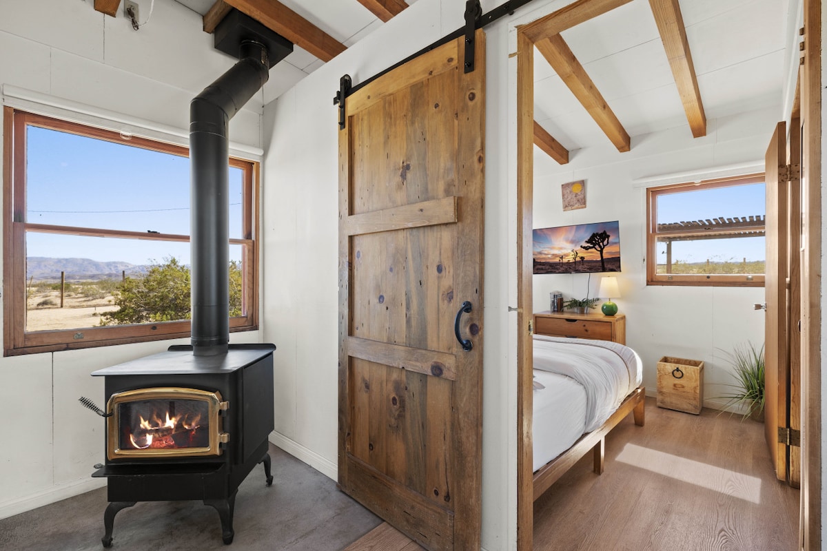 A private high-desert sanctuary designed for deep rest, reconnection, and slow mornings beneath wide open Joshua Tree skies. Soak in the cedar hot tub under the stars, plunge cold at sunrise, and unwind by the fire as the desert goes quiet around you. Thoughtfully designed with bespoke decor, linen sheets, handcrafted ceramics, curated sound, and fast Wi-Fi. Quiet, peaceful, and intentionally crafted for a rare, restorative desert escape. Reconnect with nature, with yourself, or someone you love