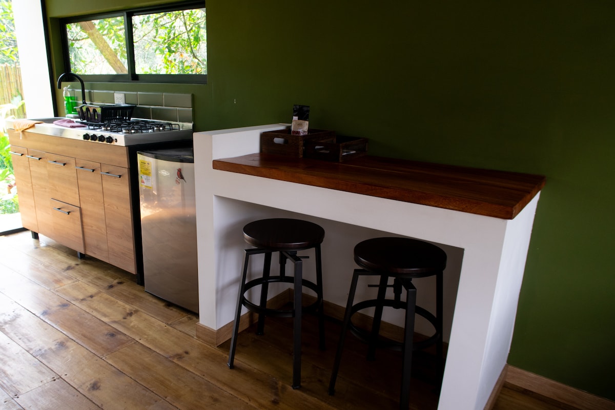 Imagina abrir la ventana y que el primer saludo del día venga del bosque. Así empieza cada mañana en Qala, una cabaña diseñada para quienes desean pausar, respirar profundo y reconectar con lo esencial. Ubicada en medio de la naturaleza, Qala combina lo rústico y lo moderno para ofrecerte una experiencia acogedora y auténtica. Su arquitectura cálida en madera, la vista panorámica al bosque y la luz natural que entra por cada rincón hacen que el tiempo aquí fluya distinto: más lento, más tuyo.