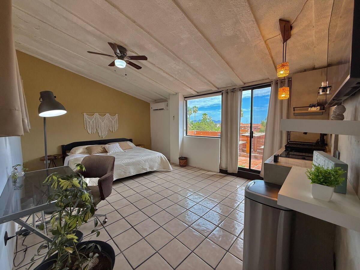 Your refuge in San Carlos 🌅 Discover our beautiful suite with spectacular views of the Marina, located in one of the best areas of San Carlos, within walking distance of bars, restaurants and shops. Designed to give you an unforgettable experience, wake up each morning to stunning views and enjoy magical sunsets next to the Tetakawi. With 2 TVs, high-speed internet, streaming TV and Roku, you'll have everything you need to relax. Come and experience unique moments in San Carlos!