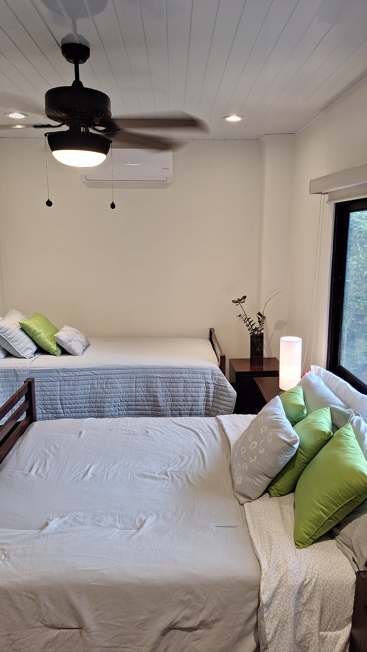 The private guestroom at Finca Colibri Panama offers a tranquil retreat designed for rest, simplicity, and privacy, immersed in the surrounding natural landscape. Guests enjoy a comfortable, thoughtfully appointed space with a private ensuite bathroom, walk-in closet, and a separate entrance for complete independence. Ideal for up to three guests seeking a quiet, restorative stay in a serene mountain setting.