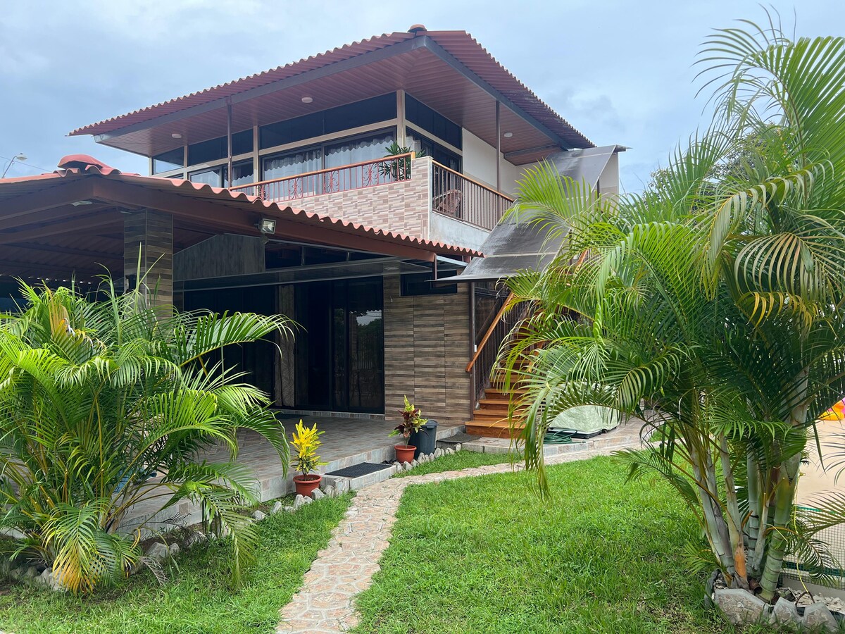 Entire house in coastal town in the pacific. The house has 3 rooms with A/C and fans, 3 bathrooms, a working kitchen with everything you need, a living room, terraces and a beautiul garden with a pool. It is within about a 15 minute walk to the beach or 10 min by car. Playa la Hermita is one of the best beaches in the area.