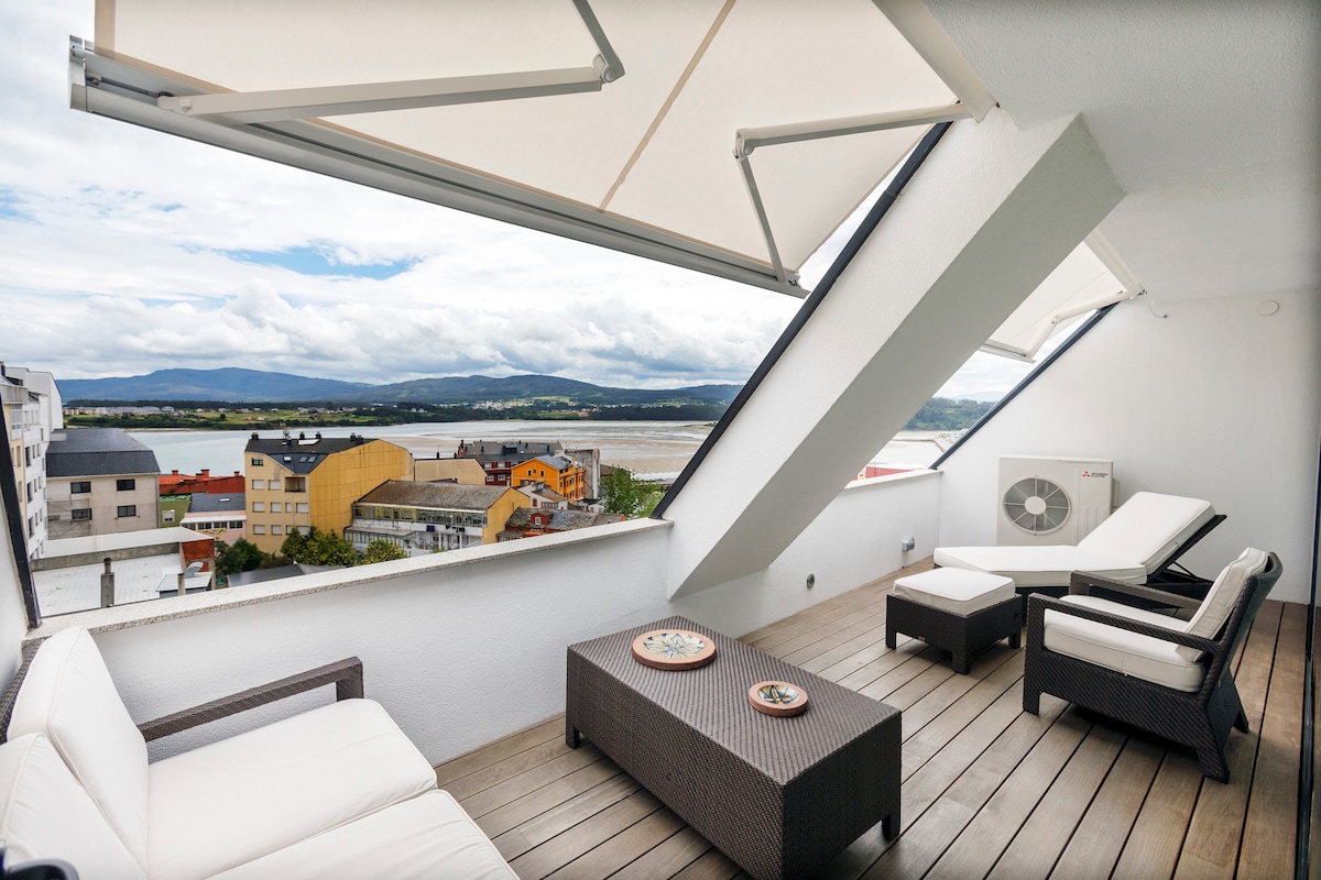 Apartment with a terrace overlooking the Ria and parking