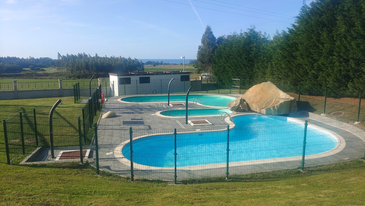 Atico & Spa de Lujo is the perfect place to enjoy your holidays. Fully equipped penthouse, all new, two bedrooms, living room, kitchenette, bathroom with shower, terrace overlooking the mountain and the pool, free covered private parking. It is located in the luxurious and exclusive Costa Reinante SPA urbanization, located in the village of San Miguel de Reinante, Barreiros, de la Mariña Lucense; easily accessible from the Cantabrian highway.
